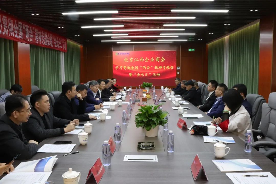 参观结束后,到访商会领导移步会议室,召开了以学习贯彻全国“两会”精神为主题的专项会议。全国政协委员、北京江西企业商会执行会长李孝轩介绍了2024年全国两会的概况,传达了习近平总书记在全国两会期间的重要讲话和政府工作报告,以及其他工作报告与文件的主要精神,对发展新质生产力、全面深化改革、推动高质量发展等方面作出重要论述,科学回答了事关党和国家事业长远发展的一系列重大问题,为推进中国式现代化注入强大动力,为我们民营经济和赣商企业高质量发展进一步指明了方向。