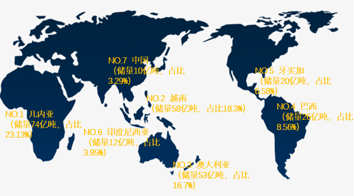 全球铝土矿储量分布(来源:对冲研投)