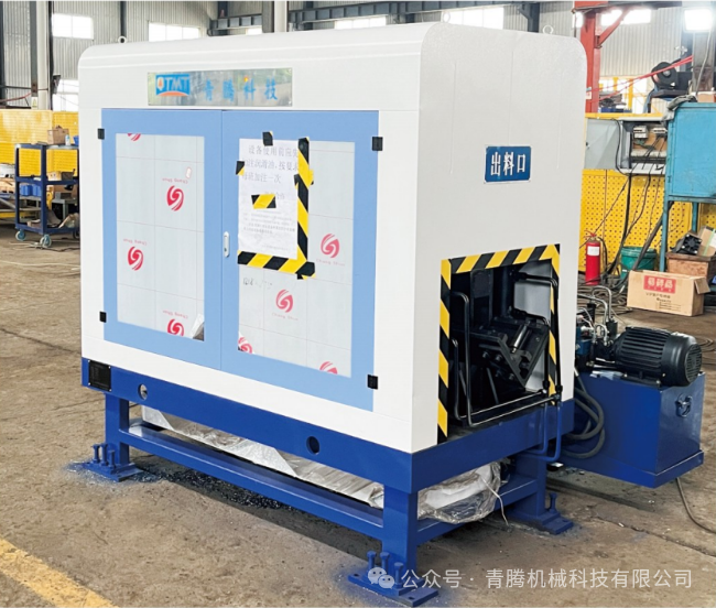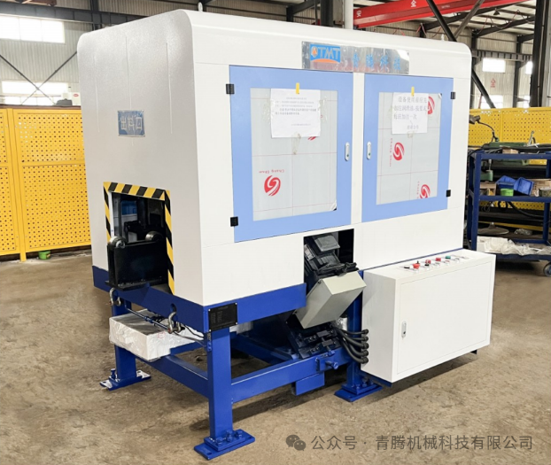 2.设备使用旋转锤击去除表面氧化渣,砂带去除毛刺。转刷倒角去切割断面氧化渣,使用胶辊压紧工件,满足小件清渣。