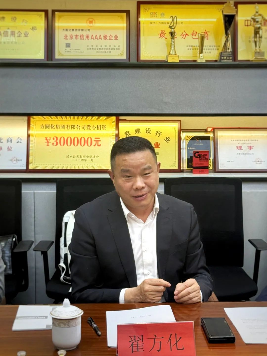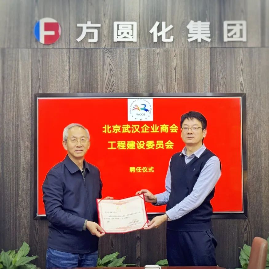 会议还举行了荣誉顾问、专委会主任、执行主任聘任仪式,商会副会长、北京方圆化集团有限公司董事长翟方化当选为工程建设委员会主任,并代表委员会进行发言。