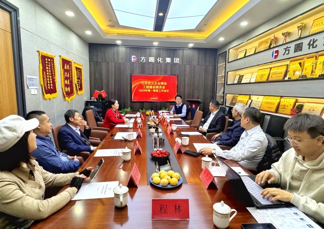 2024年3月28日下午,北京武汉企业商会工程建设委员会在方圆化集团会议室成功举办了2024年第一季度工作会议。本次会议由商会会长杨驰升、副会长唐农,商会副会长、工程建设委员会主任翟方化,副会长郭双,秘书长胡文利,常务副秘书长、工程建设委员会执行主任马如飞,秘书处主要成员及商会会员王能明、林龙、罗胜霞、程林等成员参加。会议旨在总结过去五年的工作成果,明确2024年的工作思路与计划,并进一步加强会员间的交流与合作。