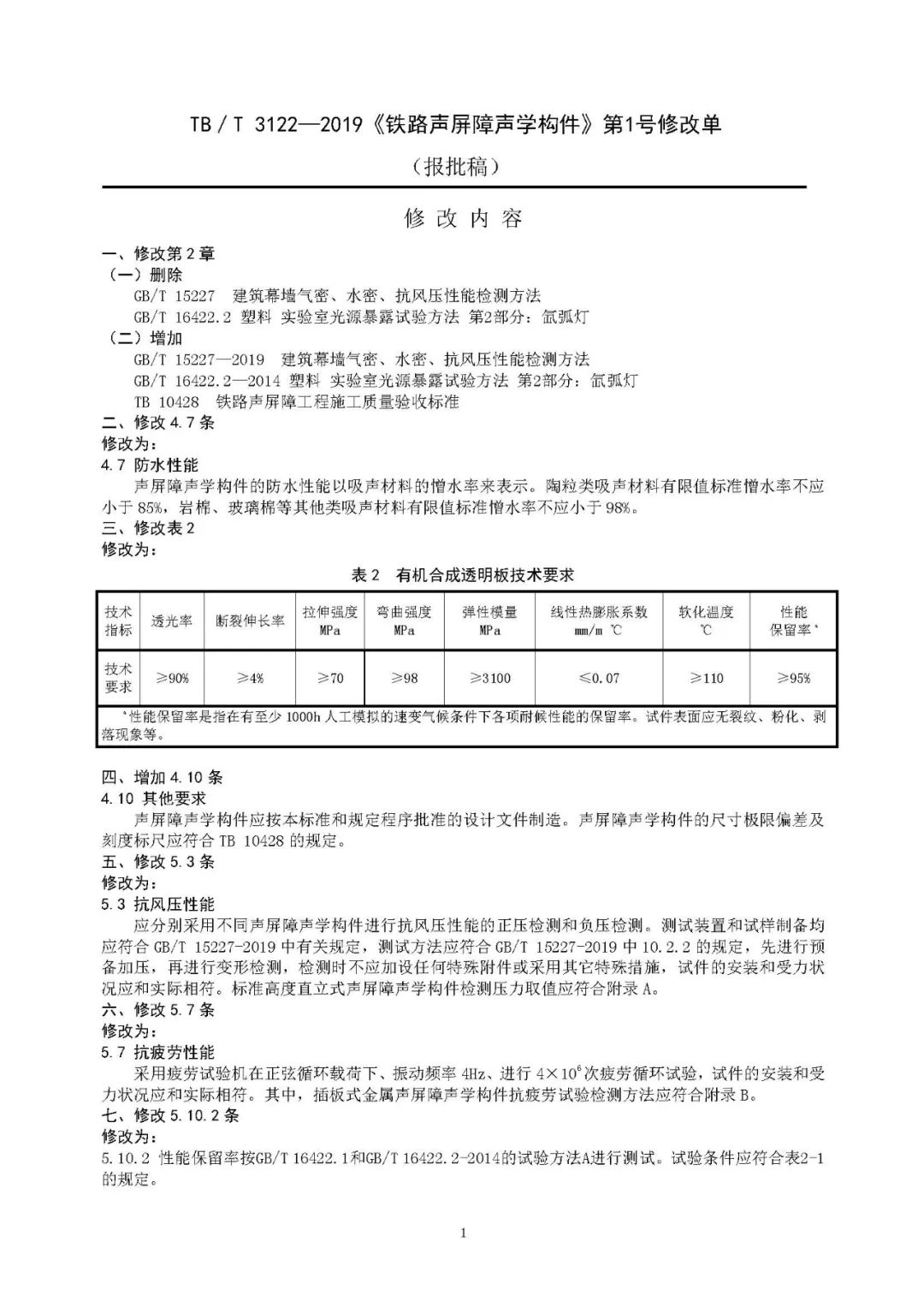 附件:TBT3122-2019《铁路声屏障声学构件》第1号修改单
