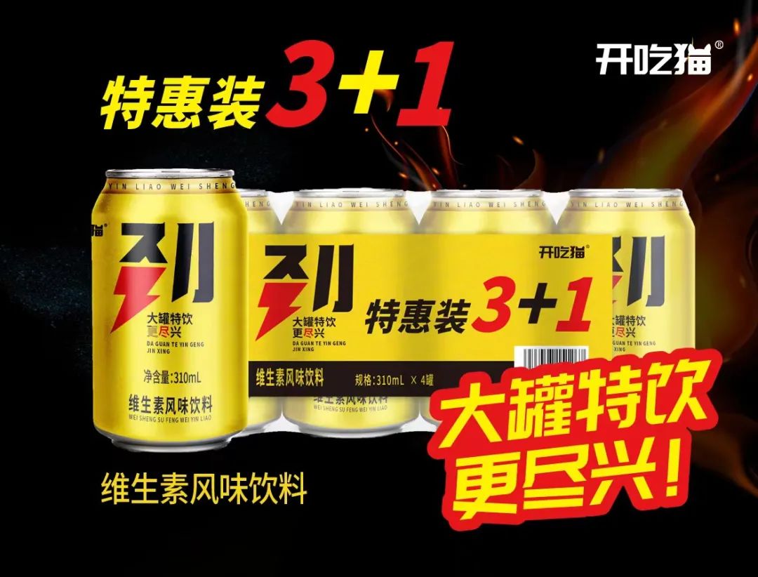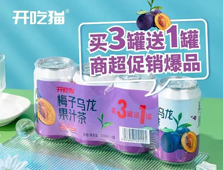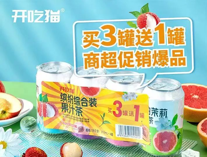 【品名】:开吃猫4连罐特惠装果汁茶、维生素功能饮料