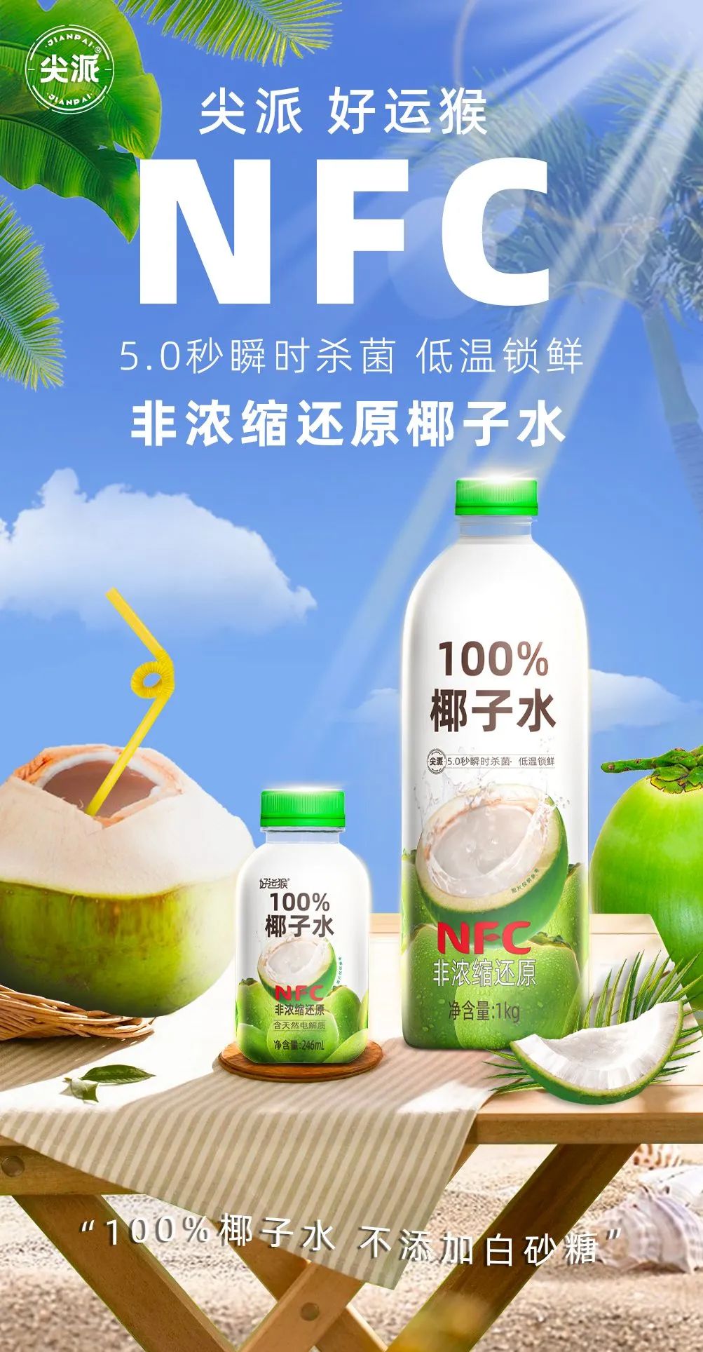 产品卖点:1、NFC 非浓缩还原100%椰子水;2、0添加白砂糖、0脂、0色素、0香精,富含天然电解质。