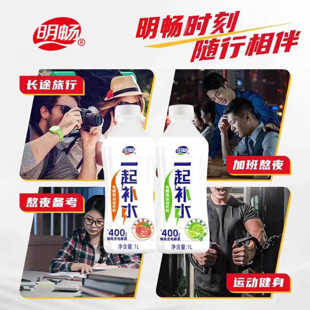 明畅一起补水是电解质运动饮料,快速补充协助力电解作平衡,两种口味:西柚味和柠檬味,非常适合夏天饮用,迅速的补充身体的所需的水分,每瓶1000mL足够够保持人体所需。