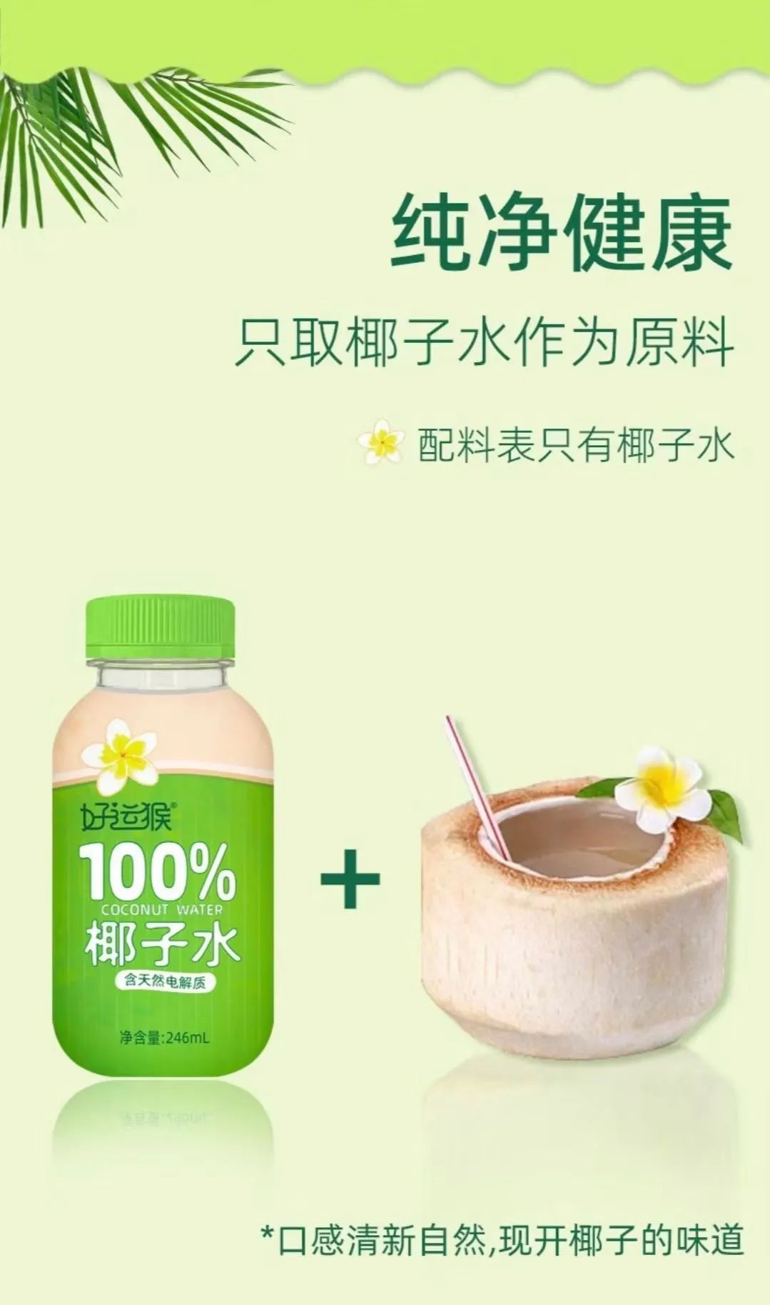 我们是真正的大自然搬运工,没有代糖(糖精)、没有防腐剂 、没有色素、没有香精、没有白砂糖!100%纯椰子水,天然电解质水!无菌冷灌NFC的标准!喝果葡椰子水!健康从此开始!高支持,高动销,低门槛!售价不到竞品的一半,利润却是翻倍!欢迎品尝样品!