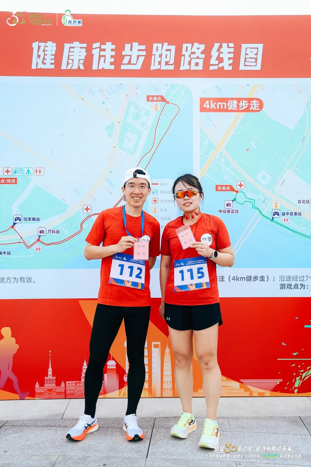 随着出席领导的集体鸣笛示意,健康跑选手、徒步走选手依次出发。其中,健康跑全程共计8公里,分男女组设立奖项,男子组取前十名:一等奖(第1名)/二等奖(第2-4名)/三等奖(第5-10名);女子组取前六名:一等奖(第1名)/二等奖(第2-3名)/三等奖(第4-6名)。健步走共计4公里,不分名次。选手沿途经过7个打卡点,回顾协会成立以来共历经的7届理事会;还分别设置了拍照点:古北站/中信泰富站/德英站/万科站,以及游戏点:益中亘泰站/海牛站/陆家嘴站。