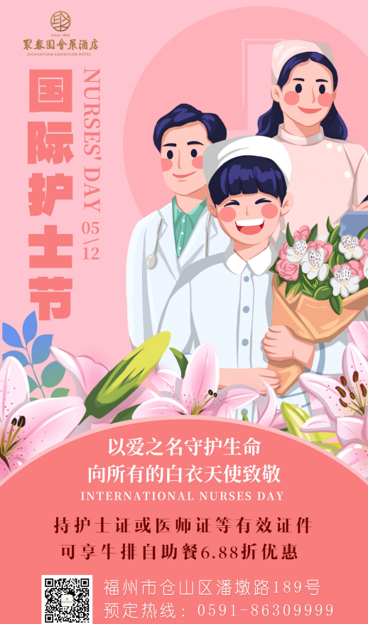 白衣天使,红色情怀。国际护士节来临之际,酒店特推出护士节活动,以此致敬医护工作者,为医护人员送上最真挚的节日祝福。