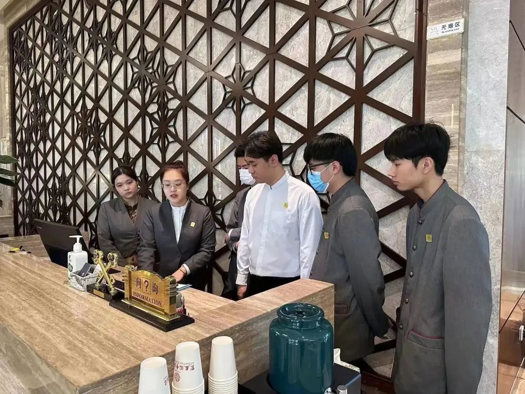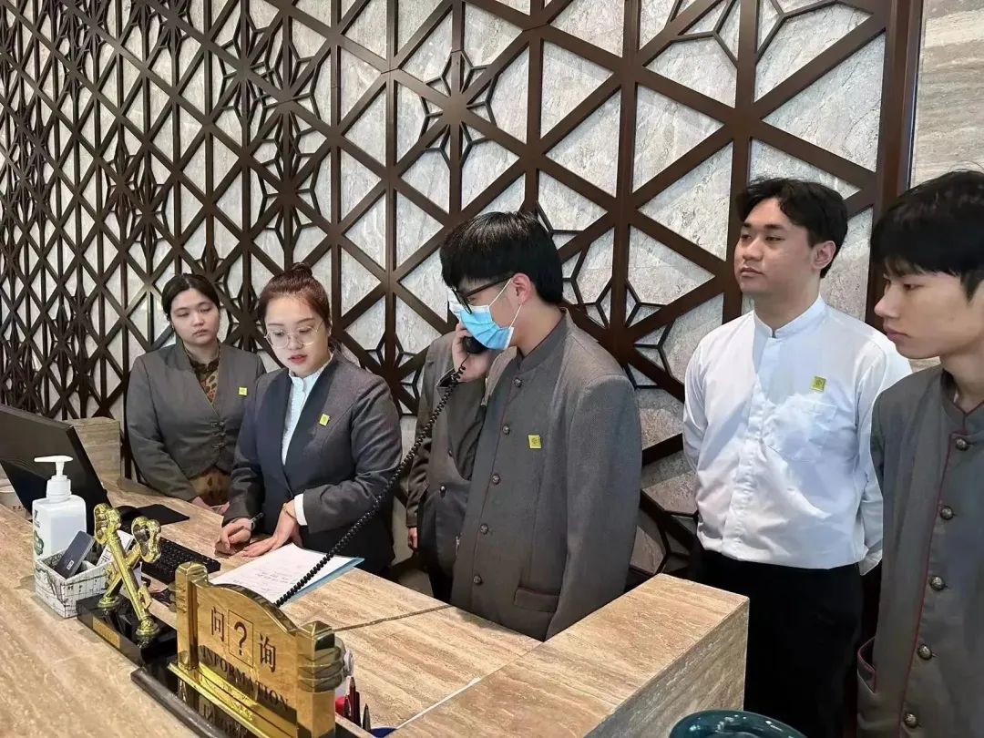 酒店前厅部开展接听电话礼仪培训,通过模拟电话接听场景,对接通用语、接电话语气及姿态等规范进行详细的讲解,强调要耐心倾听宾客的需求,服务好每一位致电的宾客,为宾客提供更优质的服务。