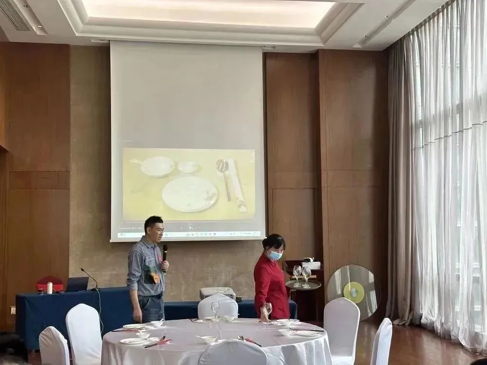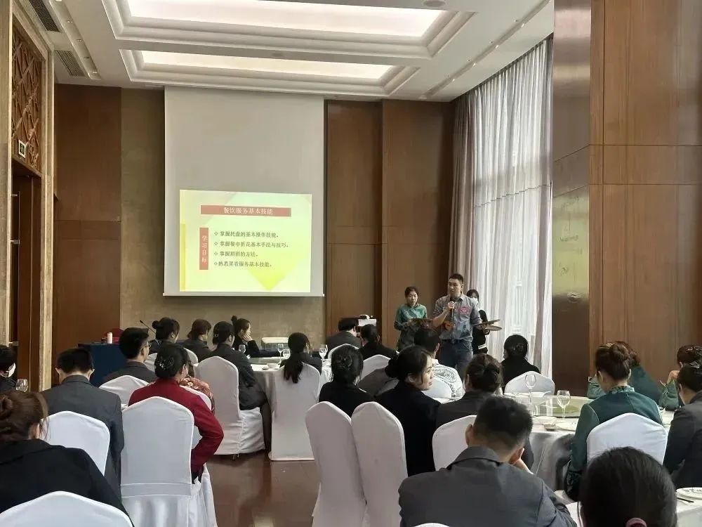 为提高酒店员工综合素质,强化酒店餐饮服务质量,酒店特邀请专业导师开展《酒店基础知识及餐厅服务》培训,通过理论知识讲解与现场实际操练相结合,进一步增强酒店员工的专业水平,提升服务技能,提高宾客满意度。