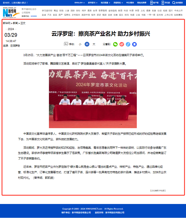 3月25日,“大力发展茶产业 奋进‘百千万工程’”——云浮罗定市2024年茶文化活动在塘镇天子茶场举行。