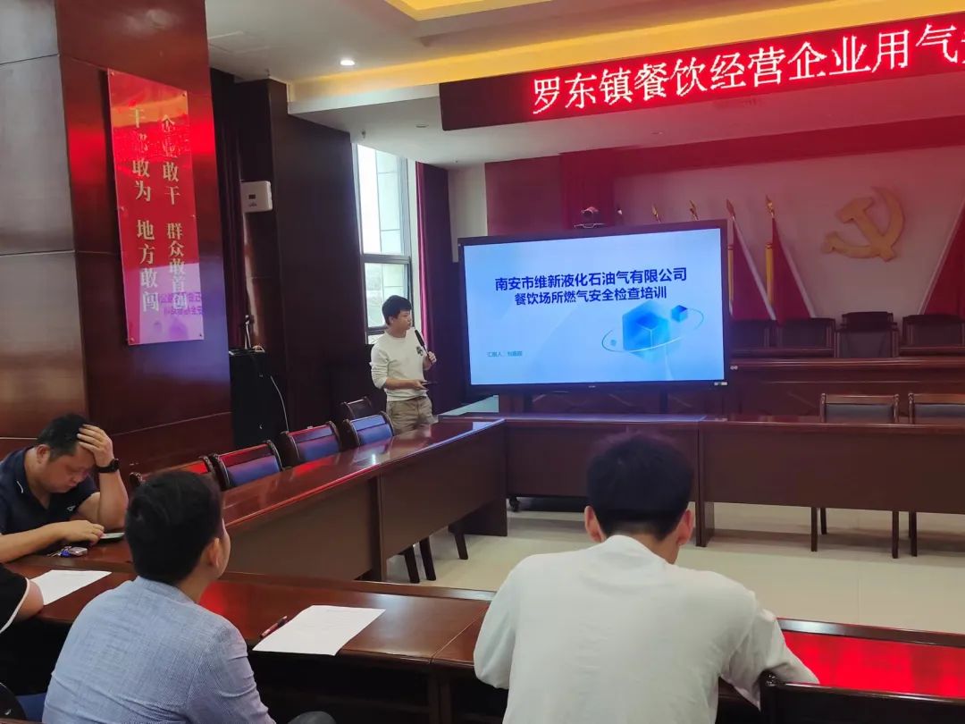 维新液化石油气有限公司负责人为参会人员作安全知识专题培训,着重对如何进行燃气安全检查、用气场所要求、用气操作要求等方面的知识进行了讲解,让商户充分认识到燃气器具存在的安全隐患和使用燃气过程中可能遇到的安全风险,切实提升了辖区餐饮业相关负责人的安全责任意识和防范风险能力。