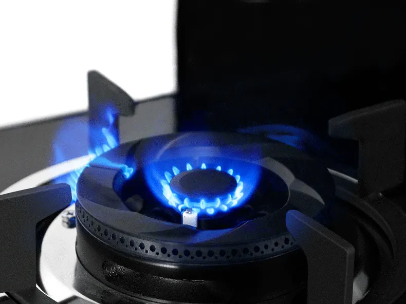 5)燃气具的使用过程是一个燃烧过程,天然气、液化气完全燃烧时,需同步消耗大量新鲜空气(天然气 1:10,液化气 1:30),因此在使用过程中需保证通风条件良好,厨房、浴室空气产生对流。燃气燃烧所产生的烟气必须排出室外。