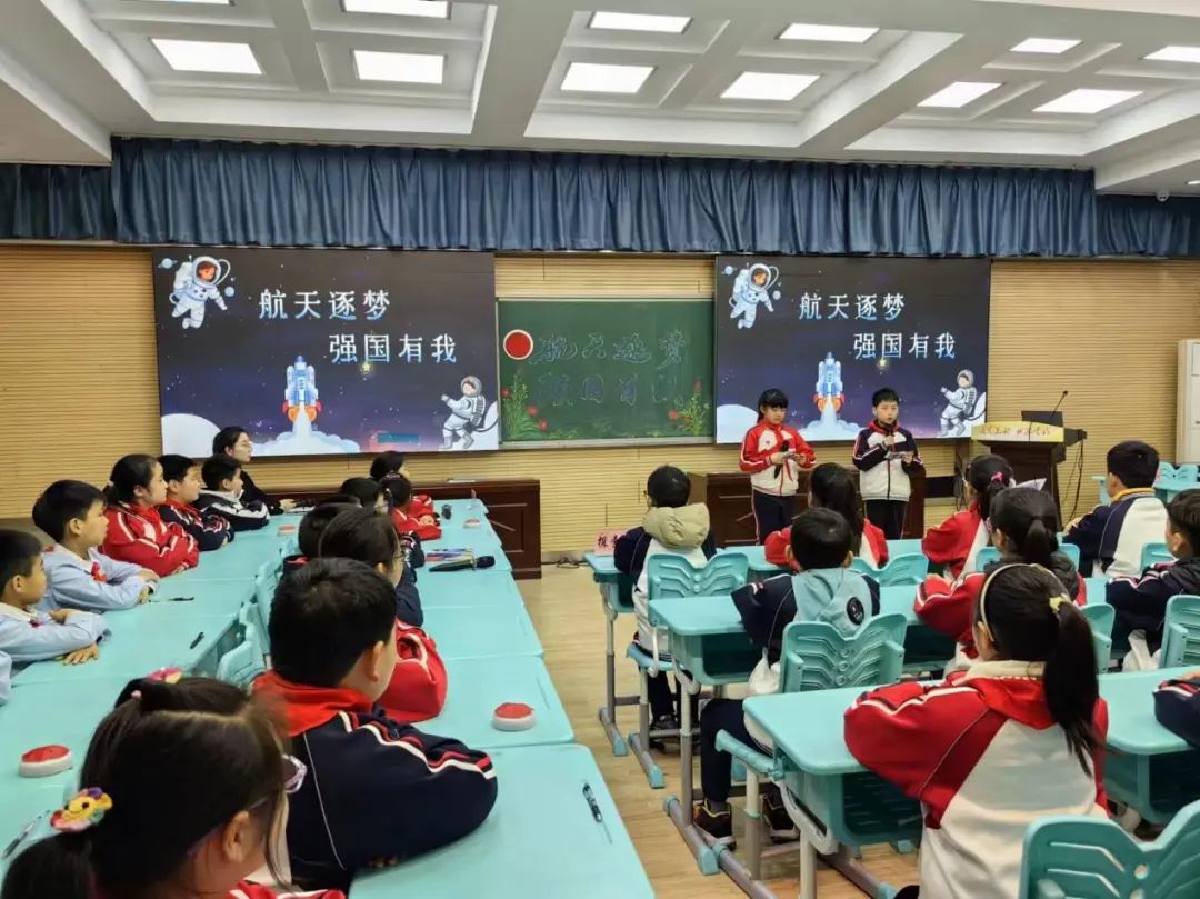 强国有我》的主题班会。郑老师她先由生活中普通的红色按钮导入到航天员们训练时的按钮,再通过沉浸式、体验式的学习模式让学生参与到课堂的各个环节中,班会最后,全体学生共同演绎了《星空》超燃歌舞,歌舞凝聚了孩子们奋发向上、立志报国的力量,班会课氛围也由此推到最高潮。