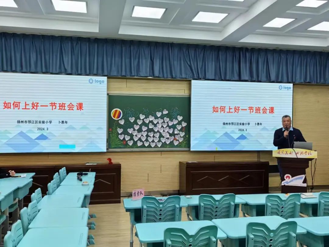 为进一步提高班主任的专业能力,3月28日下午,邗江区2023-2024学年第五次班主任岗位培训(小学组)活动在邗江实验学校邗上分校一楼报告厅顺利开展。本次培训以观摩幸福班级主题班会、专家评点讲座为主要内容,由邗江区教师发展中心和市区班主任名师工作室主办、邗江区实验学校承办。