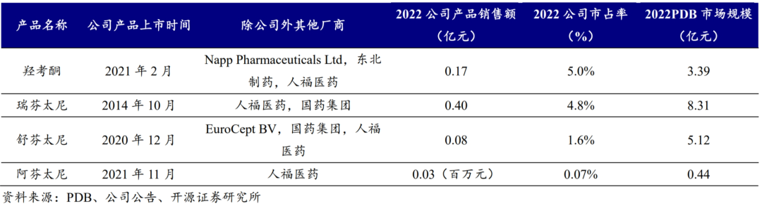 “羟瑞舒阿”四大产品是公司新上市的麻醉药品,目前这四个产品市占率极低。未来随着镇痛市场规模进一步扩大,公司加强产品学术推广,加速产品进院,“羟瑞舒阿”市占率有望得到提升,“羟瑞舒阿”四种产品也有望成为公司未来业绩的重要增长点。