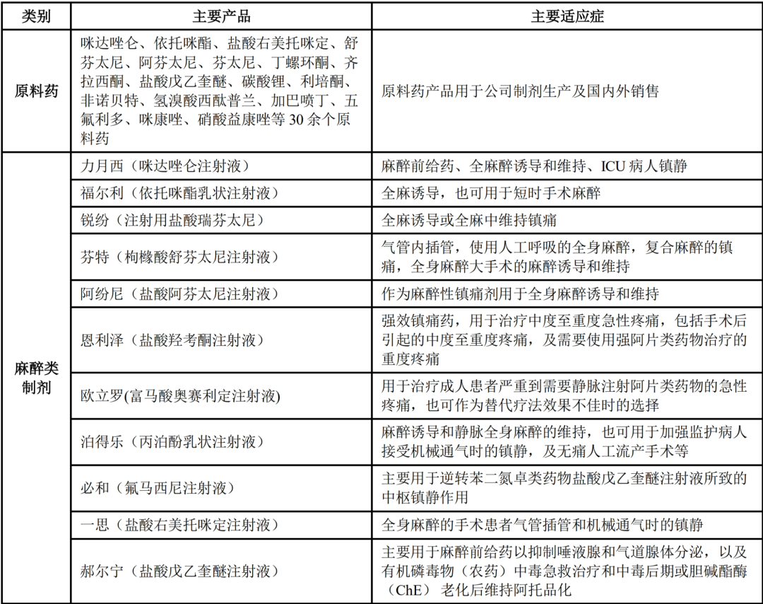 目前主要从事中枢神经类药物的研发、生产和销售,为国内医药行业中唯一一家专注于中枢神经药物细分市场的上市企业,是国内知名的麻醉与精神药品定点生产基地,产品涵盖麻醉镇痛类、精神类和神经类等药物。