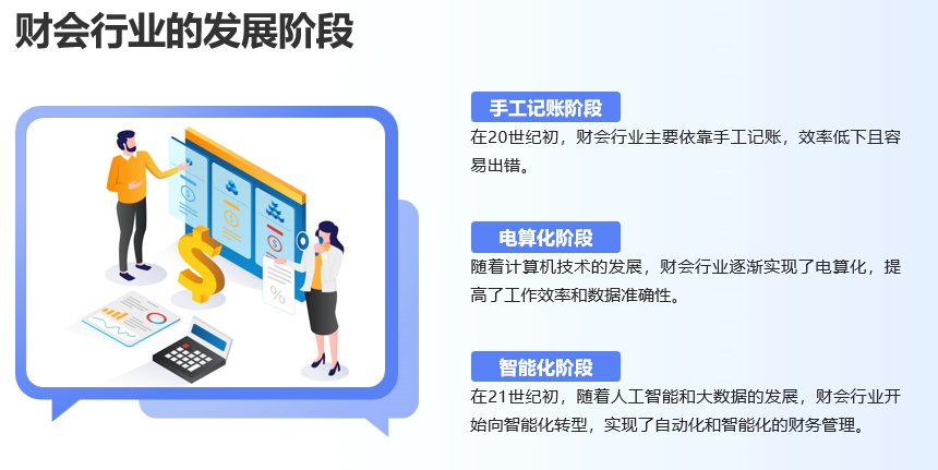 首先,周爸爸为同学们讲解了财会行业的发展历程,从手工记账,到电子计算,再到如今的SaaS智能化运算,财会行业的发展无疑是迅速的,充满了挑战和机遇