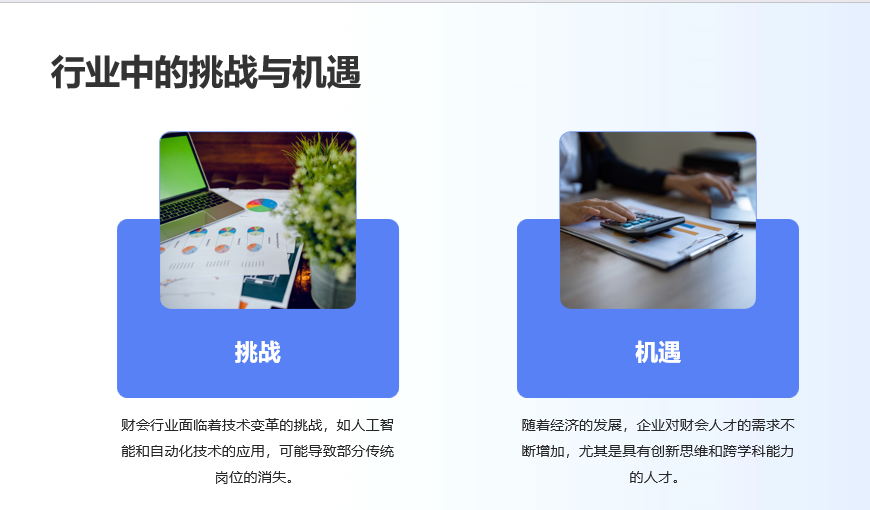 财会行业对于人的综合素质有着较高的要求,既需要财会专业知识,数据分析能力,也需要财会从业人员具有良好的心理素质和沟通能力