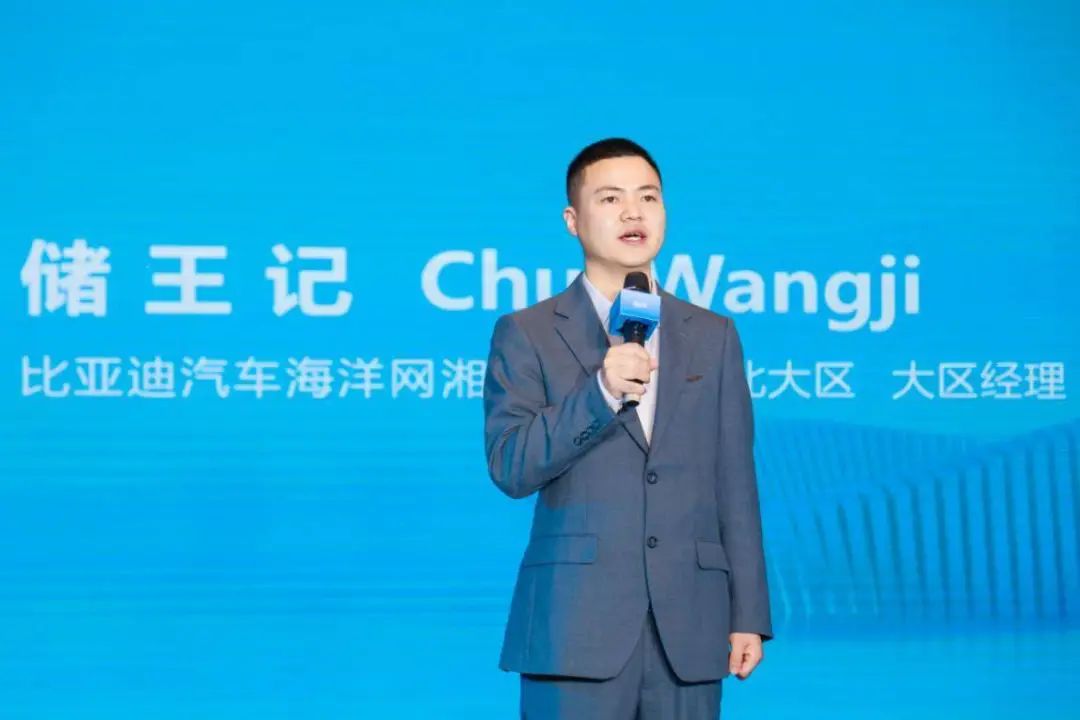 比亚迪海洋网湘鄂赣战区湖北大区大区经理储王记登台致辞,带领大家回顾了比亚迪过去一年取得的突破性成绩,比亚迪海洋网更是仅用3年时间便突破百万辆,成为全球百万俱乐部用时最短汽车品牌。海洋网荣耀版车型的推出,彰显了比亚迪全面践行“电比油低”、推动新能源迭代合资燃油的决心,以及引领出行体验向更高价值进阶的底气。