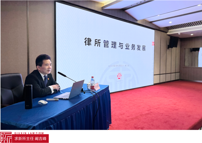 阚吉峰主任以其独特的视角和深入浅出的讲解方式,让在场的学员高度认同。同时,阚吉峰主任结合求新所的党建引领所建的理念、发展模式、律所管理的实际情况,律所发展战略、法律服务产品研发以及年轻律师的培养等方面作了细致解读。