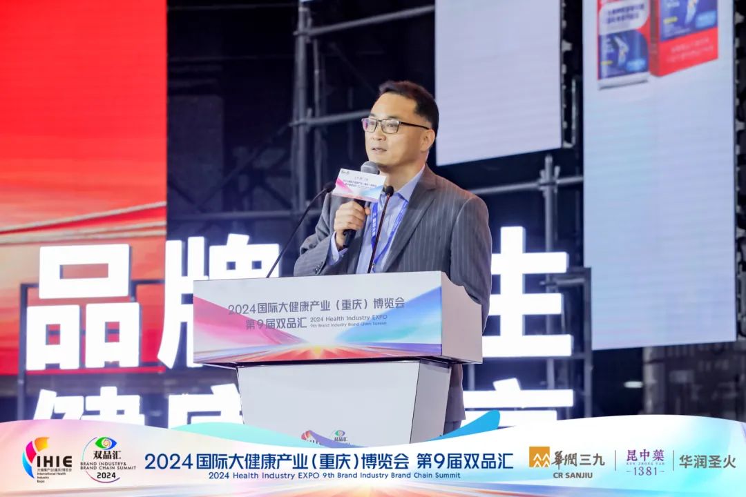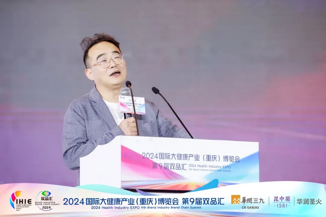 中国医药物资协会副秘书长、重庆中盟医药股份有限公司总裁吴均福先生致答谢辞,首先,他代表2024国际大健康产业(重庆)博览会暨第九届双品汇组委会,对所有参与本次博览会的政府相关部门领导、行业合作伙伴、双品汇的支持者以及工作者们致以崇高的敬意以及最诚挚的感谢!他表示,大健康产业正面临着前所未有的机遇与挑战。随着全球人口老龄化的加剧,健康需求的多样化和个性化日益凸显。我们必须不断创新,不断进步,以更加开放的心态拥抱变化,以更加专业的态度服务社会,以更加卓越的技术改善人类健康。