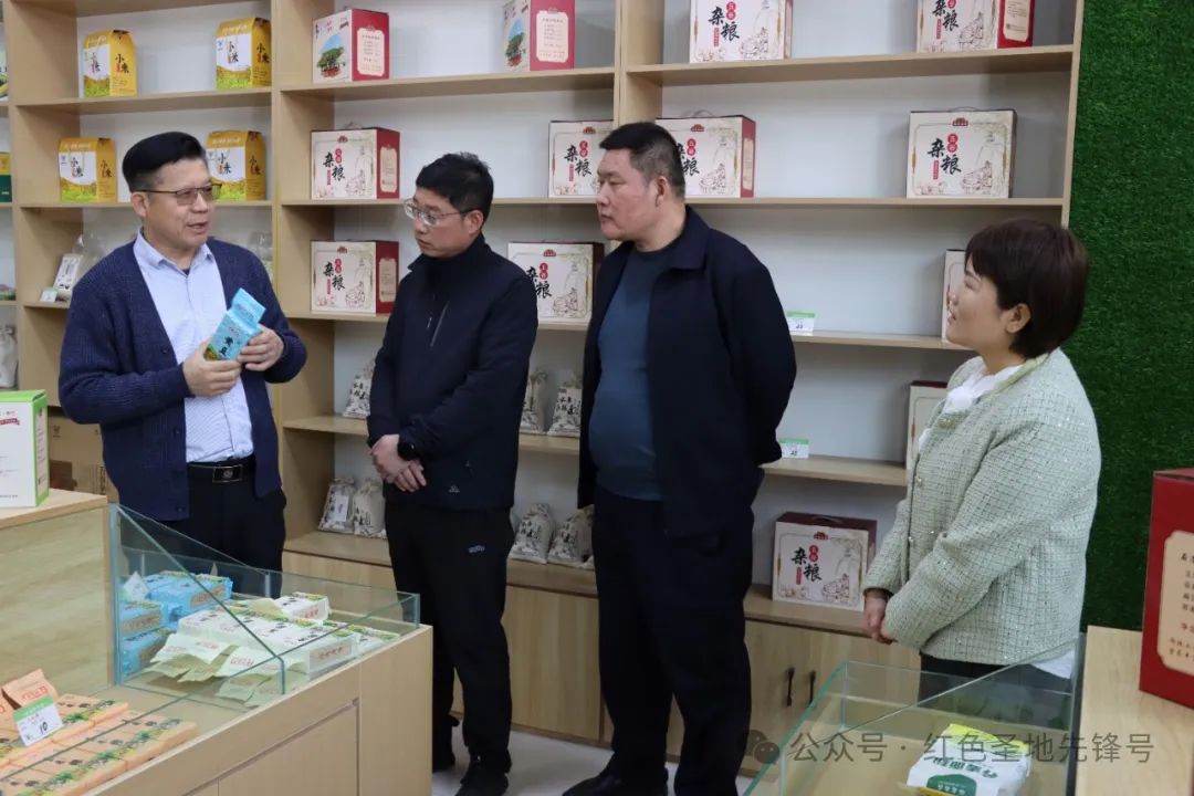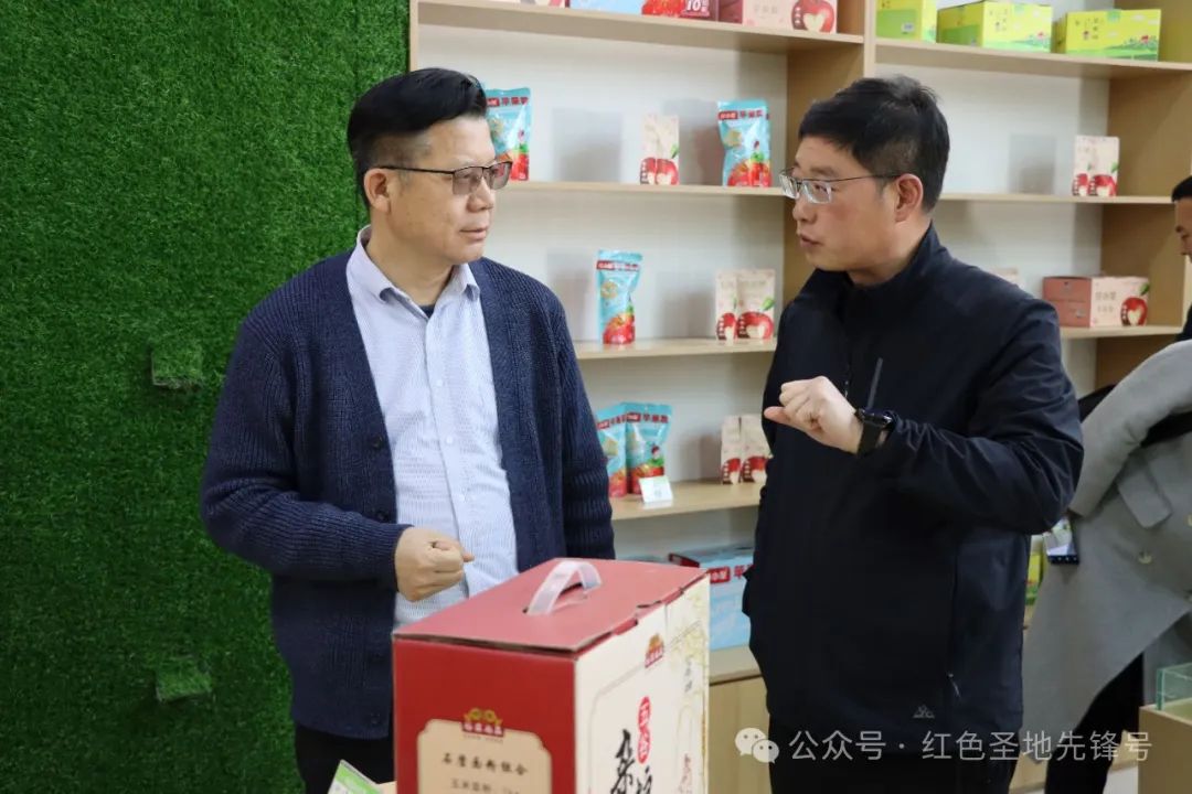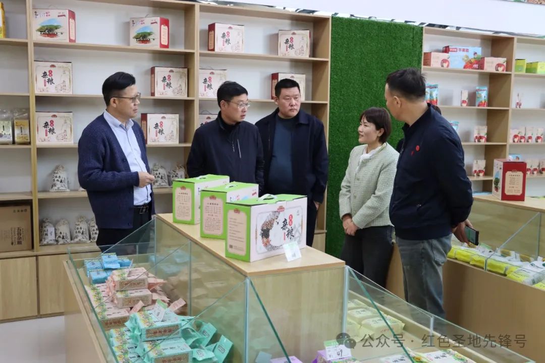 考察组一行先后来到李堡村现代设施蔬菜产业园、界石铺镇东西协作电商产业园、界石铺镇口口食品醋加工厂、继红村五角星广场红色文化体验区等地实地考察。详细了解我镇的特色产业、农产品加工销售、相关产业链建设及招商引资服务等情况。
