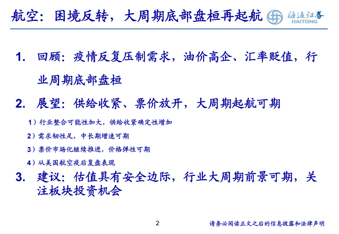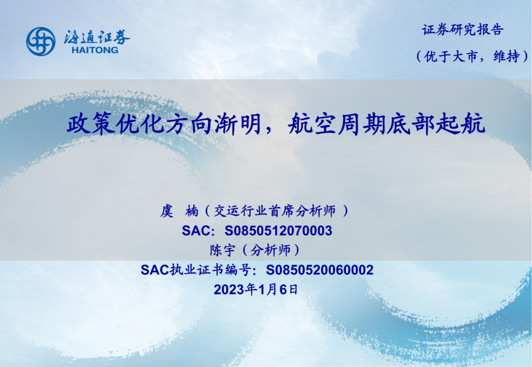 【报告】交通运输行业:政策优化方向渐明,航空周期底部起航