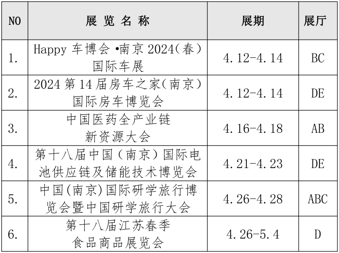 2024年3月份南京国际博览中心展会排期| 2023年11月20日