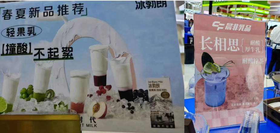 中性基底在茶饮领域的应用极为普遍,无论是乳基底还是厚椰乳,都深受消费者青睐。然而,当这些中性基底与PH值偏低的酸性水果元素相结合时,常常会出现起絮发花的问题。多家行业领军企业进行针对此问题进行技术革新,在展会上纷纷推出了可耐酸的乳基底产品,为乳基产品的创新应用开启了崭新的篇章。