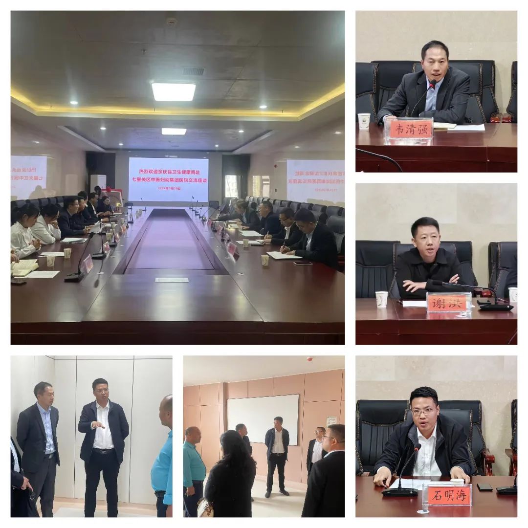 3月29日下午,余庆县卫生健康局、余庆县中医医院、余庆县妇幼保健院一行莅临我院进行调研指导。在我院党委书记石明海的陪同下参观了儿童康复科、产科家化病房、针灸推拿康复科等特色科室。参观结束后在三楼远程会议室举行了交流座谈会。我院宋洪利院长主持会议,双方就医院发展进行了深入交流。七星关区卫生健康局党委委员谢洪出席会议。
