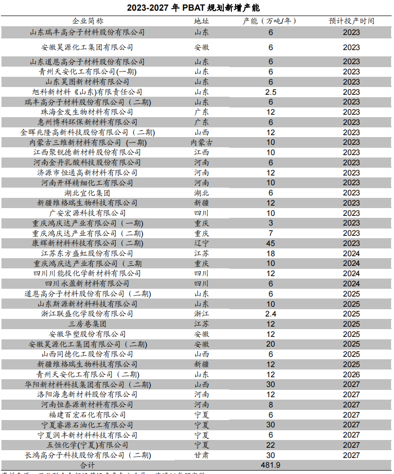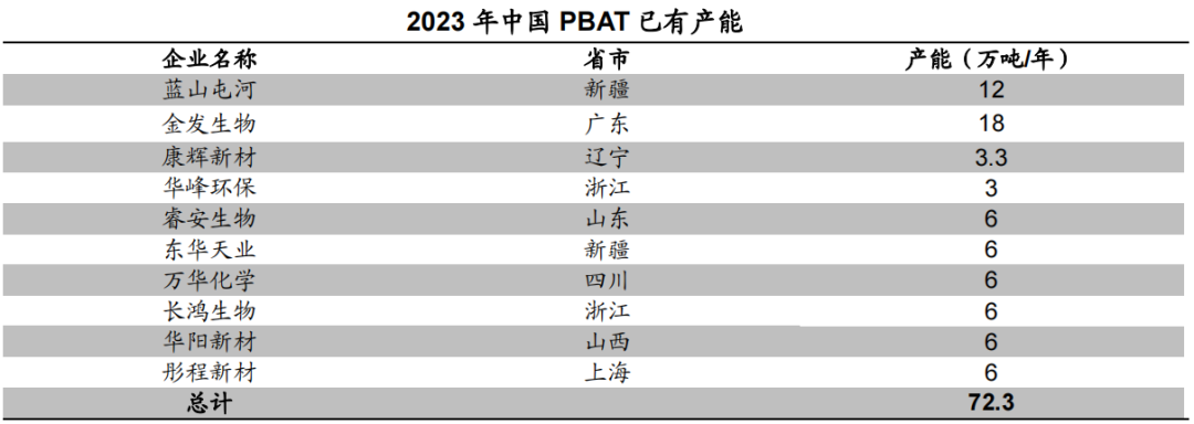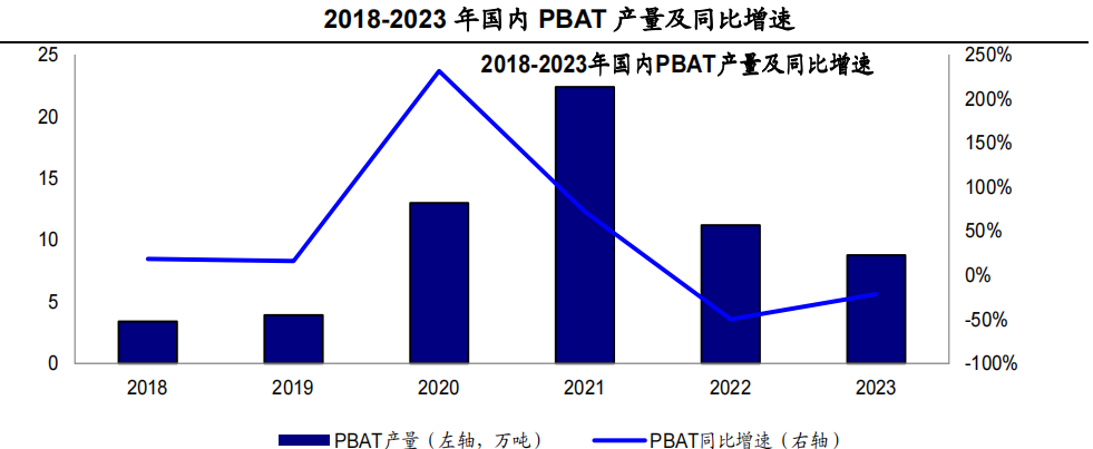 PBAT主要市场应用为生物降解塑料,2021-2023年国内PBAT产量持续下降。