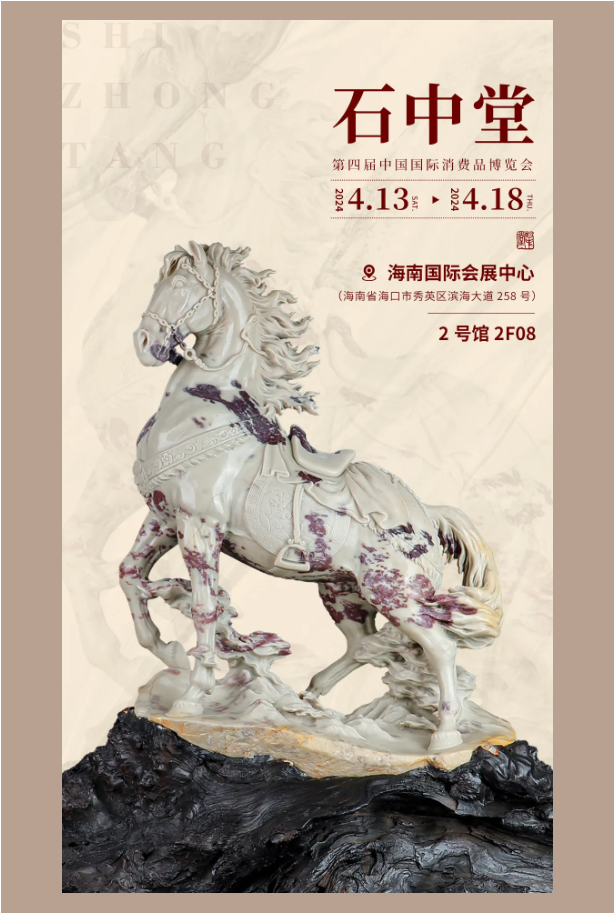 第四届中国国际消费品博览会将于2024年4月13—18日在海南省海口市举办。福建石中堂文化艺术有限公司将携精美玉雕作品亮相消博会2号馆2F08号展位, 欢迎各位新老石友们莅临现场,喝茶、品石。