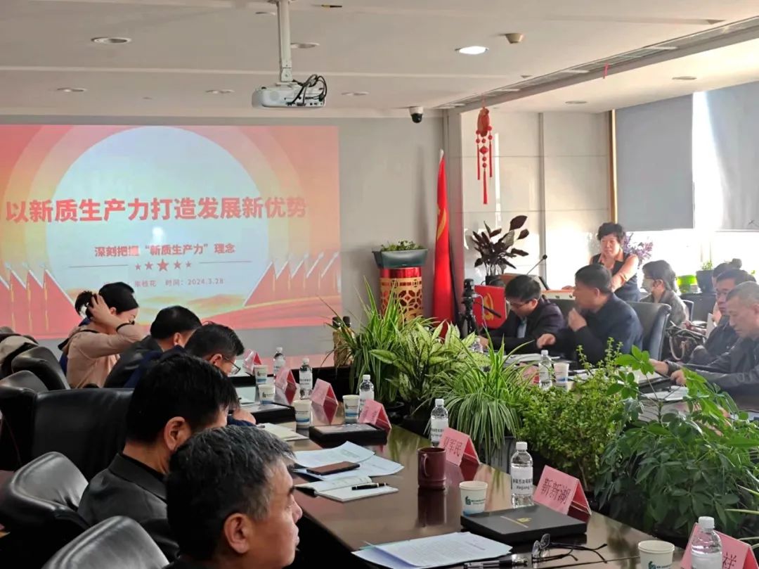 会上罗开明同志传达学习习近平总书记致中华工商业联合会成立70周年的贺信精神;靳新湖同志传达学习全国“两会”精神;李自学同志传达学习习近平总书记在新时代推动中部地区崛起座谈会上的重要讲话精神;于三宝同志传达学习全国工商联主席高云龙署名文章;李自学同志传达学习习近平总书记在新时代推动中部地区崛起座谈会上的重要讲话精神;朱桂花同志为大家上了一堂主题为“以新质生产力打造发展新优势”的党课,进一步深刻把握“新质生产力”理念。