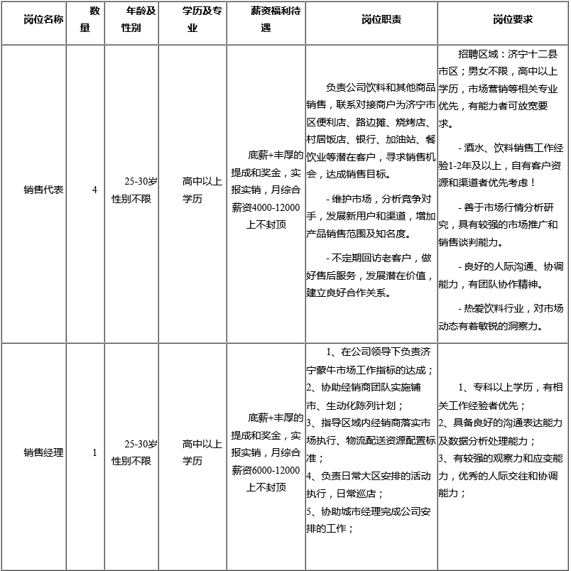 公司简介:公司从事燕京饮料济宁代理销售,市场普及济宁地区(曲阜、梁山除外),欢迎各界朋友代理销售。燕京是中国知名品牌,市场营销广泛,大众接受价位,市场份额较大,代理起来轻松挣钱