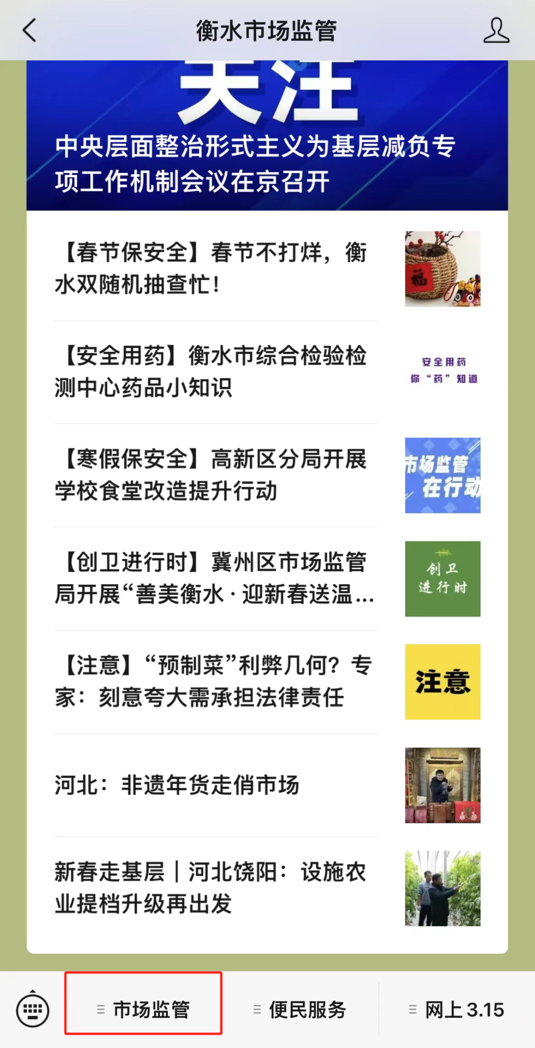 可以关注“衡水市场监管”微信公众号