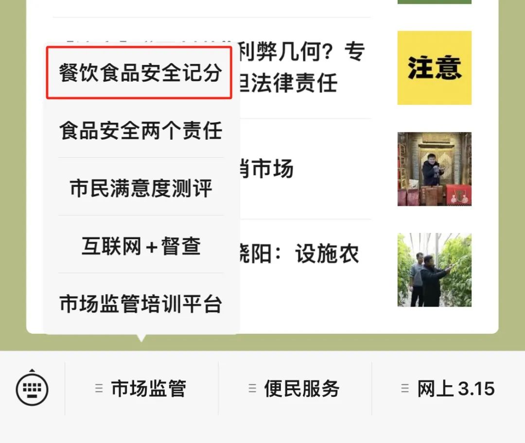 点击“餐饮食品安全记分”微信小程序