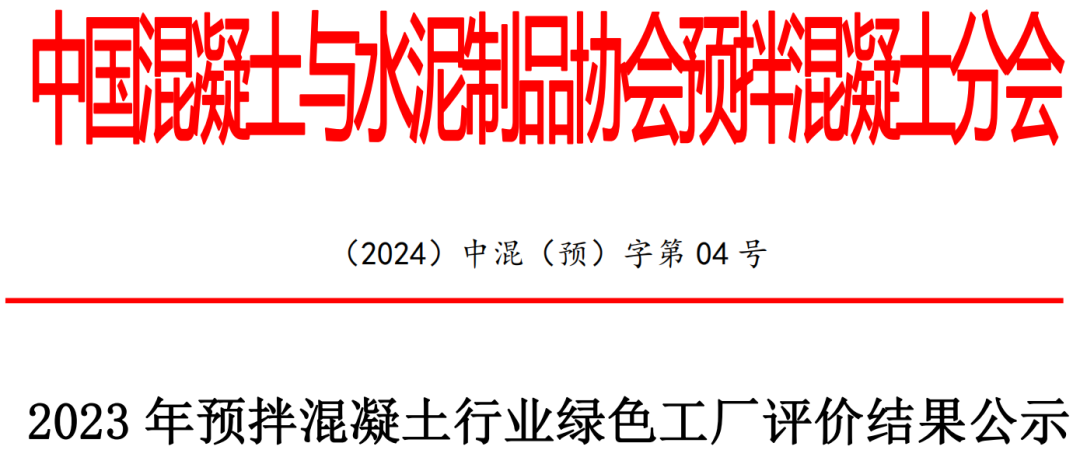 中国混凝土与水泥制品协会预拌混凝土分会于2024年3月29日在北京组织召开了2023年预拌混凝土行业绿色工厂评价专家评审会。根据《预拌混凝土行业绿色工厂评价管理办法》和《预拌混凝土行业绿色工厂评价指标体系》的要求,遵循公开、公平、公正的原则,现将经评审委员会评审,对通过的14家企业进行公示。
