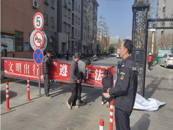 城市嘉园小区物业工作人员进行文明宣传标语张贴工作。