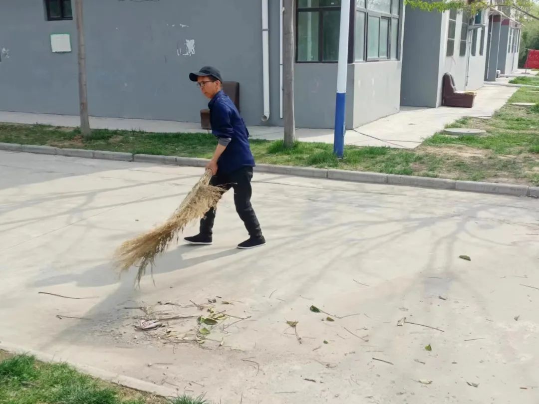 城市嘉园小区物业工作人员打扫小区公共区域的卫生,营造良好的小区环境。