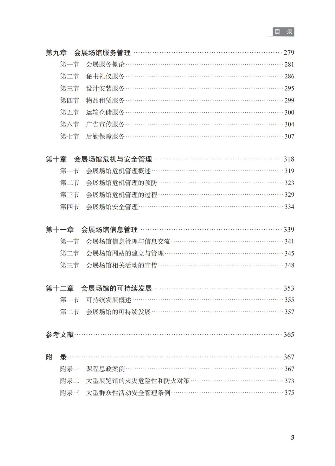 本教材针对会展管理专业的特点,在充分借鉴、吸纳前人和同行已有成果的基础上,进行了编写,并且在成书过程中始终坚持以下几个原则:一是在内容安排上从会展管理专业的培养目标出发,紧密结合教学要求,强调教材的理论性和实用性;二是理论与实践相结合,通过大量的课堂练习和案例加强学生对理论知识的理解;三是强调教材的可读性,收集了国内外近年来优秀的有关会展场馆经营与管理的相关文献资料,穿插在相关章节中,加深学生对理论知识的理解。