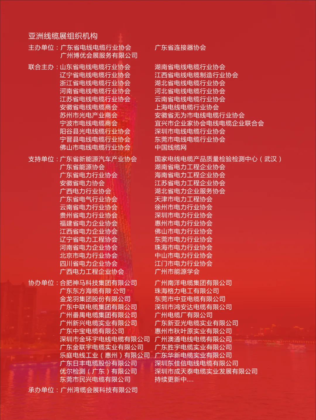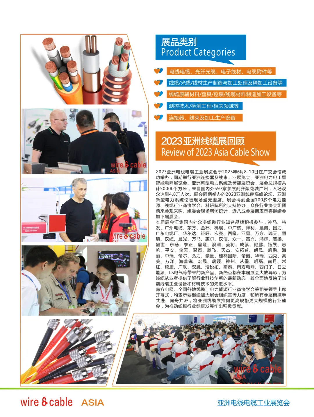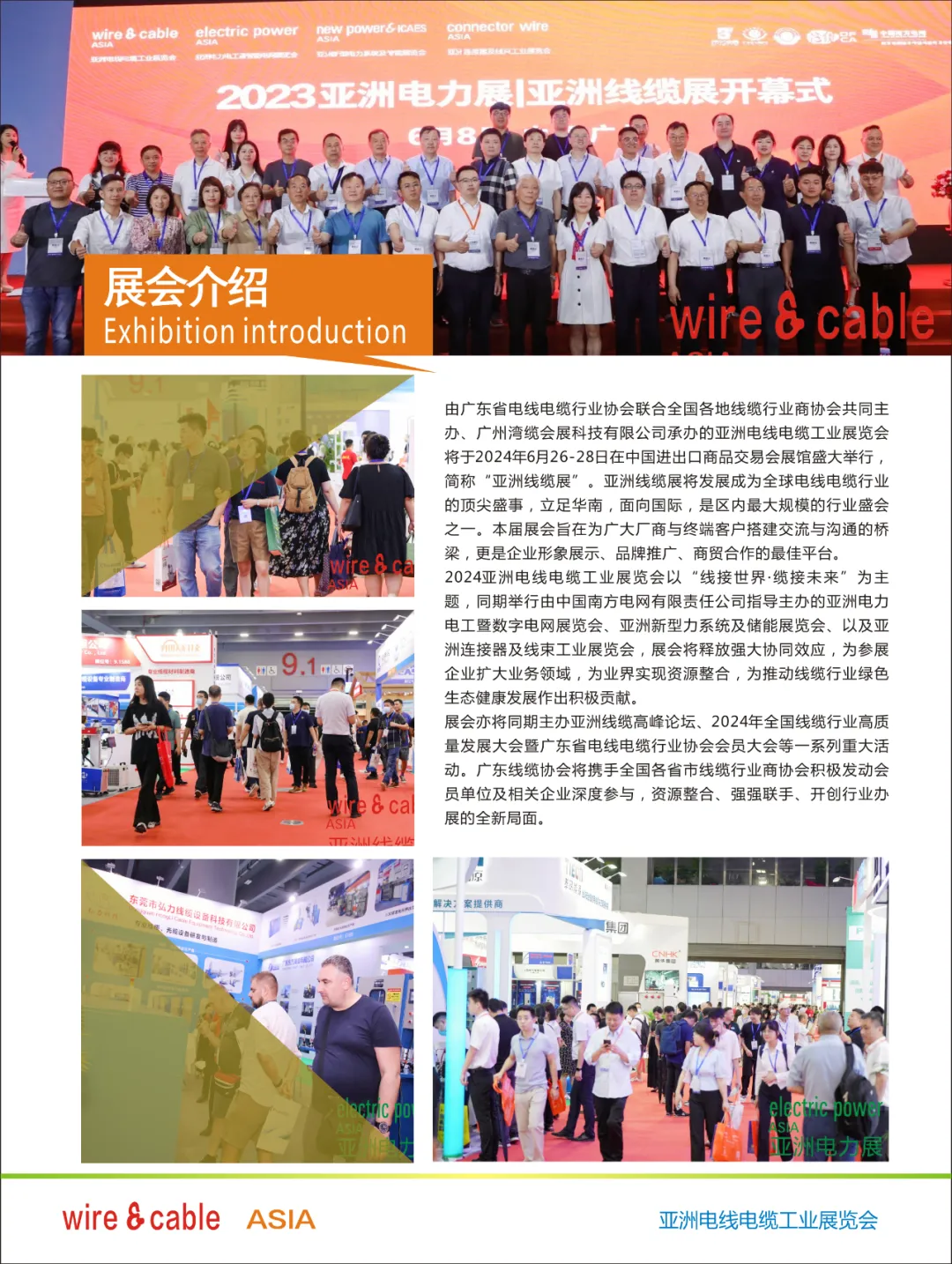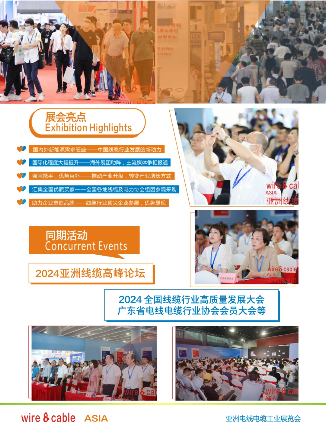 2024亚洲电线电缆工业展览会以“线连世界·缆接未来”为主题,同期举行由中国南方电网有限责任公司指导主办的亚洲电力电工暨数字电网展览会、亚洲新型力系统及储能展览会、以及亚洲连接器及线束工业展览会,展会将释放强大协同效应,为参展企业扩大业务领域,为业界实现资源整合,为推动线缆行业绿色生态健康发展作出积极贡献。