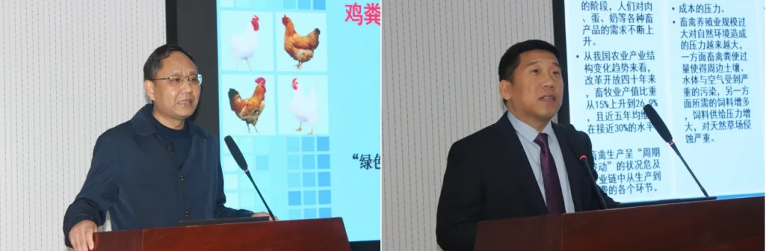 占秀安研究员作了《鸡粪无害环保化处理与资源化》的报告,从养殖废弃物种类及重金属含量、鸡粪无害化处理及资源化技术以及给出了鸡粪无害化处理及资源化建议等三个方面做了阐述。他指出鸡粪无害化处理要遵循减量化、无害化和资源化三个原则,实现废弃物处理和资源开发双赢的局面。粪污无害化处理离不开政策方向的指导,国务院办公厅提出了关于加快推进畜禽养殖废弃物资源化利用的若干意见,为粪污处理提供了发展方向。他强调,要综合考虑鸡粪无害化处理,既要做到在饲料源头减排、在养殖过程减控、还要在末端利用先进的技术对鸡粪进行合理再利用。