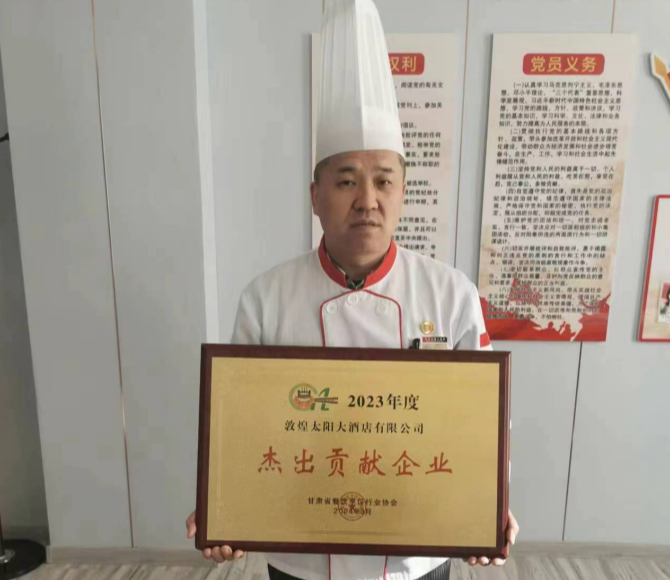 敦煌宾馆有限责任公司、敦煌市浚成商贸有限公司(富国酒店)、敦煌太阳大酒店有限公司荣获2023年度甘肃餐饮杰出贡献企业。