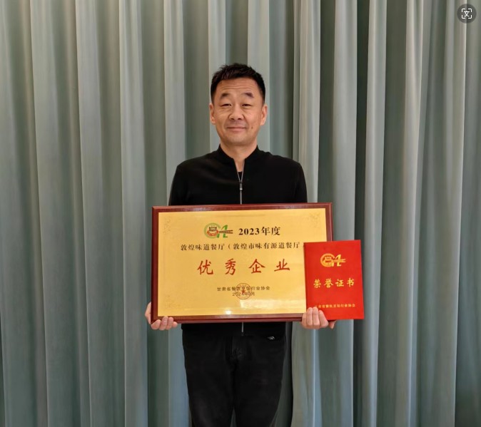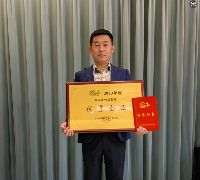 敦煌市达记酱驴肉黄面馆、敦煌市河仓餐饮服务有限责任公司、敦煌市帅厨餐厅、敦煌味道餐厅(敦煌市味有源道餐厅)荣获2023年度甘肃餐饮优秀企业。
