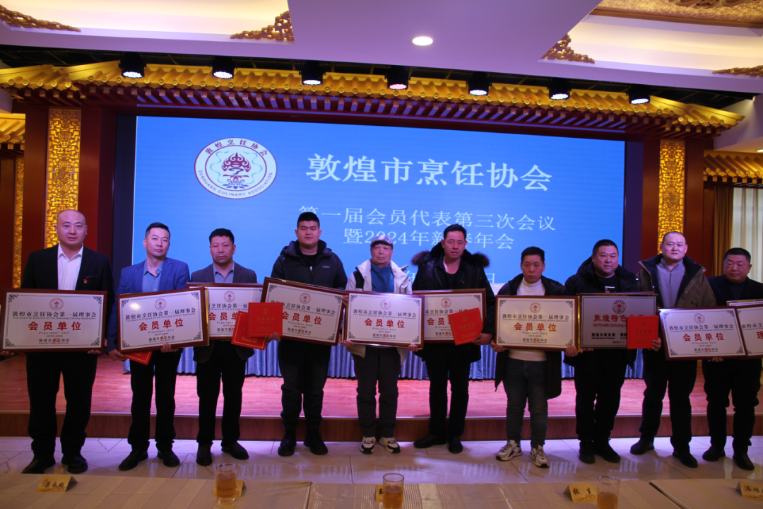 近日,甘肃省餐饮烹饪行业协会2023年度年会圆满召开,敦煌市烹饪协会会长田富国以及全省14个地市州名誉会长、副会长、名誉副会长、理事、会员代表、名厨专业委员会委员共计270余人参加了大会。敦煌市烹饪协会9家会员单位荣获2023年度甘肃餐饮杰出贡献企业、优秀企业及抗震救灾先锋企业称号,受到了大会表彰。
