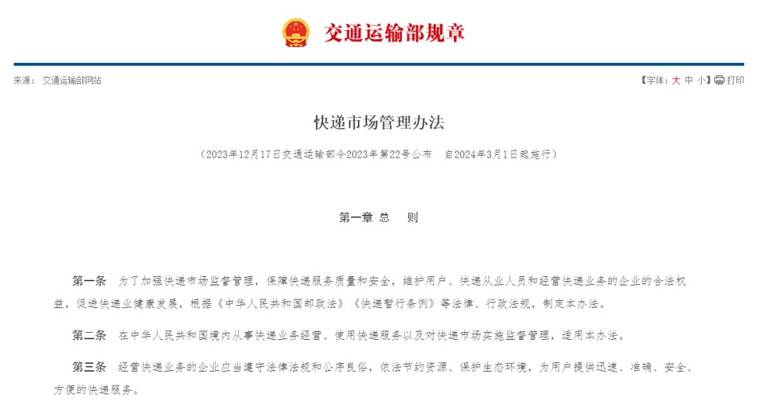目前,政策监管的工作重点是提升快递行业的发展质量。2024年1月,市场监管总局(国家标准委)发布《快递包装重金属与特定物质限量》、《快递服务》、《快递循环包装箱》等五项国家标准,进一步规范邮政行业发展,提升快递服务质量水平。2024年3月修订后的《快递市场管理办法》正式颁布,助力行业朝着健康可持续的方向发展,而高质量、高服务和高效率也已成为快递行业发展的关键词。