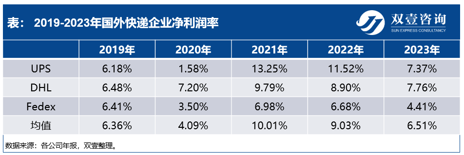 尽管竞争加剧和价格战的频发,让行业的利润率大幅下降,但是相比于国外快递巨头公司的利润率来看,中国快递行业仍有一定的盈利空间。据公开数据显示,国际巨头快递公司(如UPS、DHL和FedEx)的平均净利润约为7.2%,而国内快递市场在市场规模、技术创新、服务质量等方面仍有显著的增值潜力,这就预示着中国快递行业仍蕴藏着一定的利润空间,未来有机会赶超国外快递行业的利润水平。