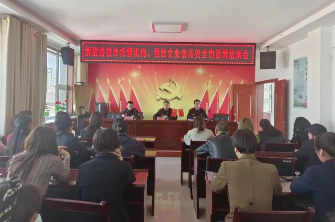 为进一步提升食品安全监管水平,防范食品安全风险,3月29日,解放路市场监管所组织召开了校外托管机构和餐饮企业食品安全约谈培训会,辖区托管机构及大中型餐饮企业负责人63人参加会议。