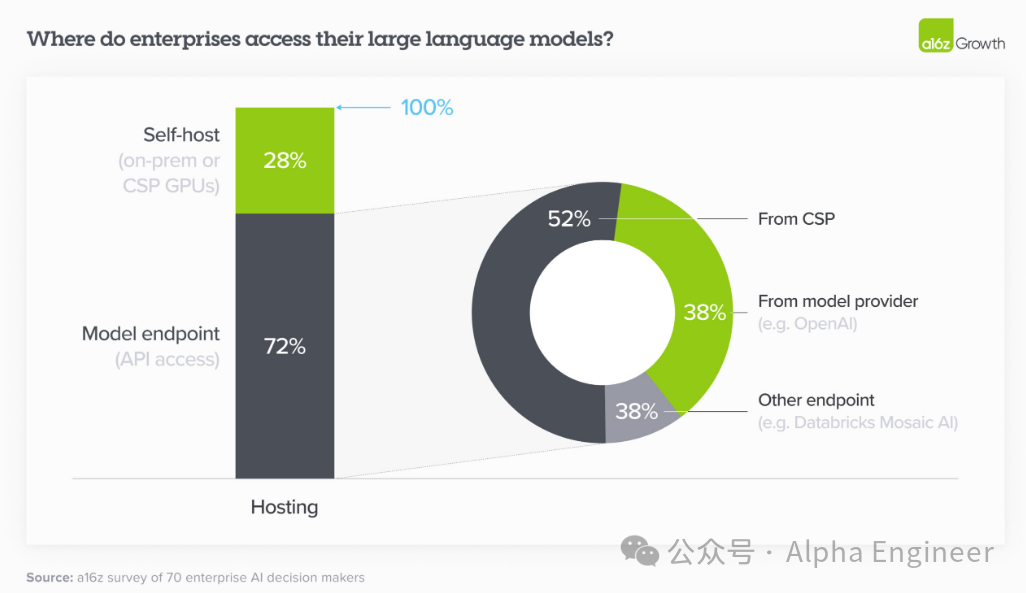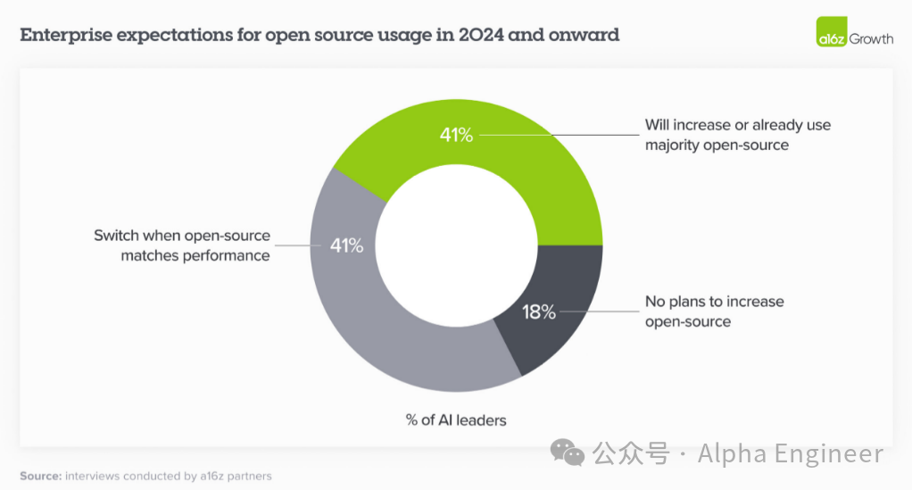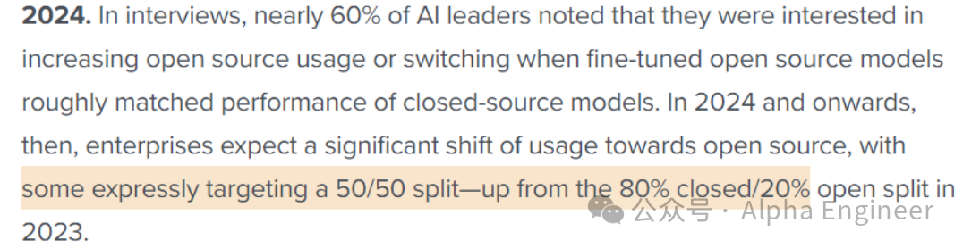 a16z预测,24年基于开源大模型的相关采购部署会成为主流趋势,与闭源大模型形成5-5开的局面。